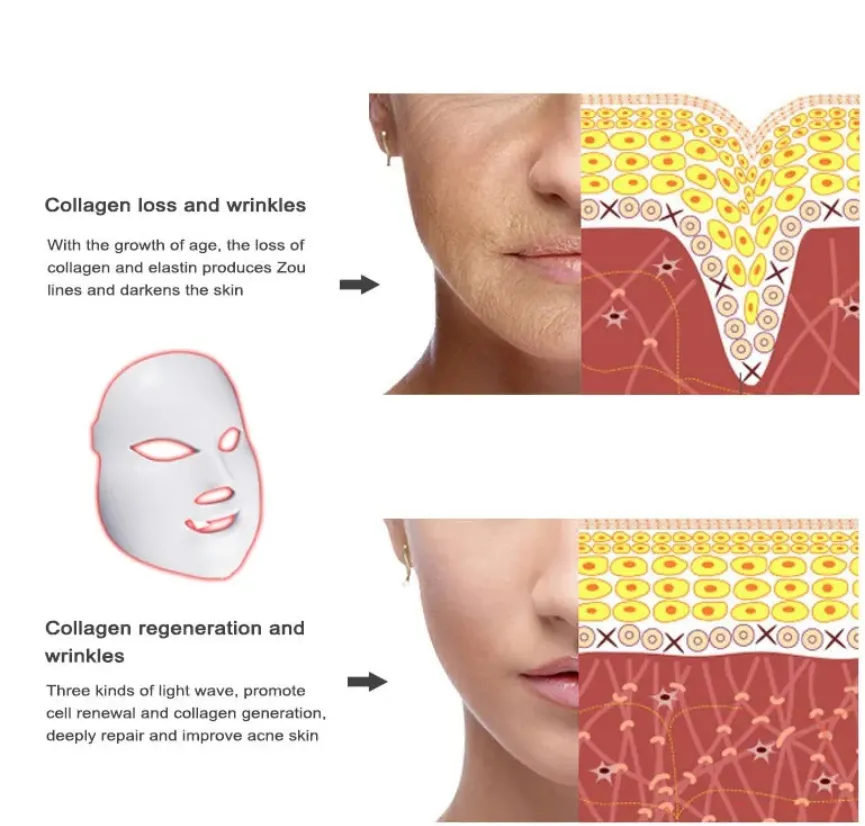 1.Specially designed for facial beauty, using LED natural light waves to transmit to the skin, help activate collagen, promote skin collagen growth, make the skin more transparent and white, tighten pores, and make the skin Tighten, improve skin brightness, smoother and more elastic, accelerate detoxification, effectively accelerate skin metabolism, and promote skin toxin excretion. No needles, safe and fast treatment and skin protection.