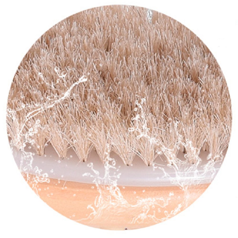 2-in-1 Design: Use the brush with the long handle for back scrubbing or remove it to use as a palm-sized brush. Portable design. Made of natural boar bristles and natural wooden handle; with hardness; toughness and elasticity. From moisture; mildew to insect control.