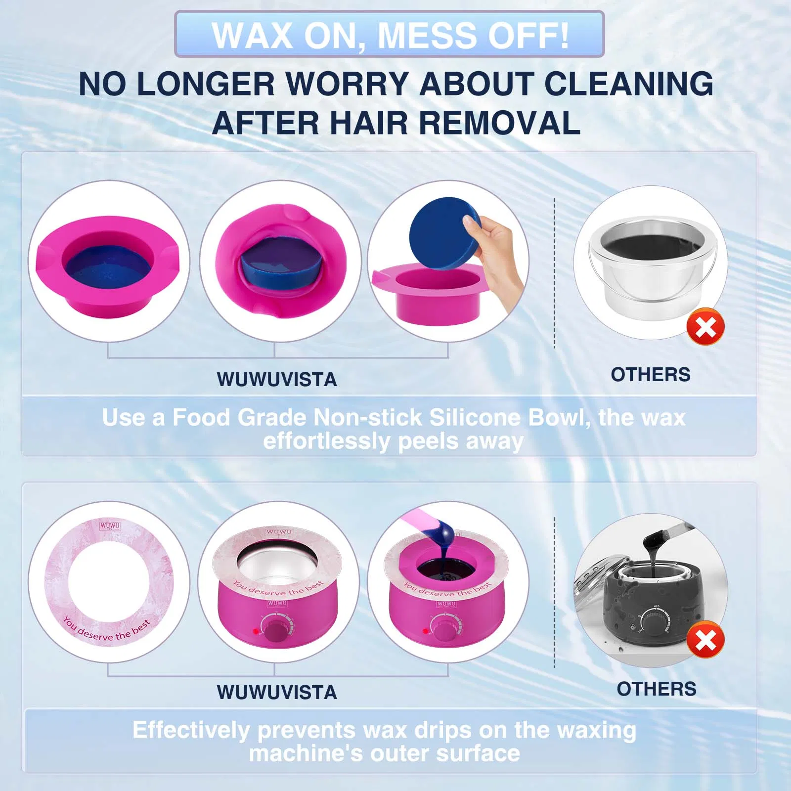 WUWUVISTA waxing kit ensures you're all set for effortless waxing at home or on the go. It's non-irritating, non-odorous, gentle on the skin, yet effective with an amazing hair removal rate.